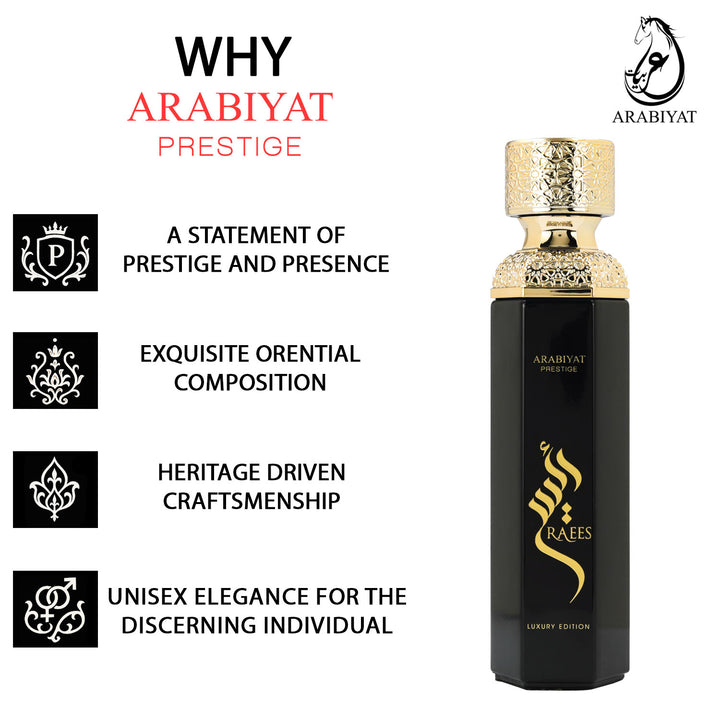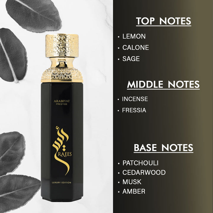 Raess Luxury Edition is a fresh woody aquatic fragrance that is an ode to the sun, sand and sea landscape of the Gulf. The fragrance wraps you in an aura of escape, freedom, adventure. This fragrance is crafted as an intoxicating timeless classic.
